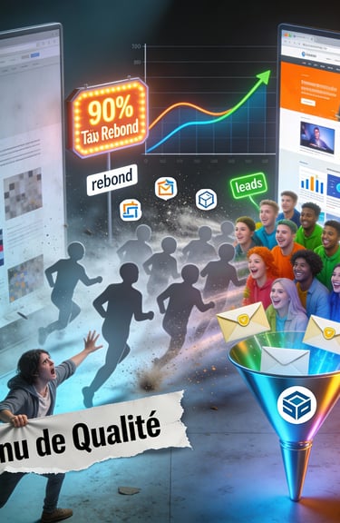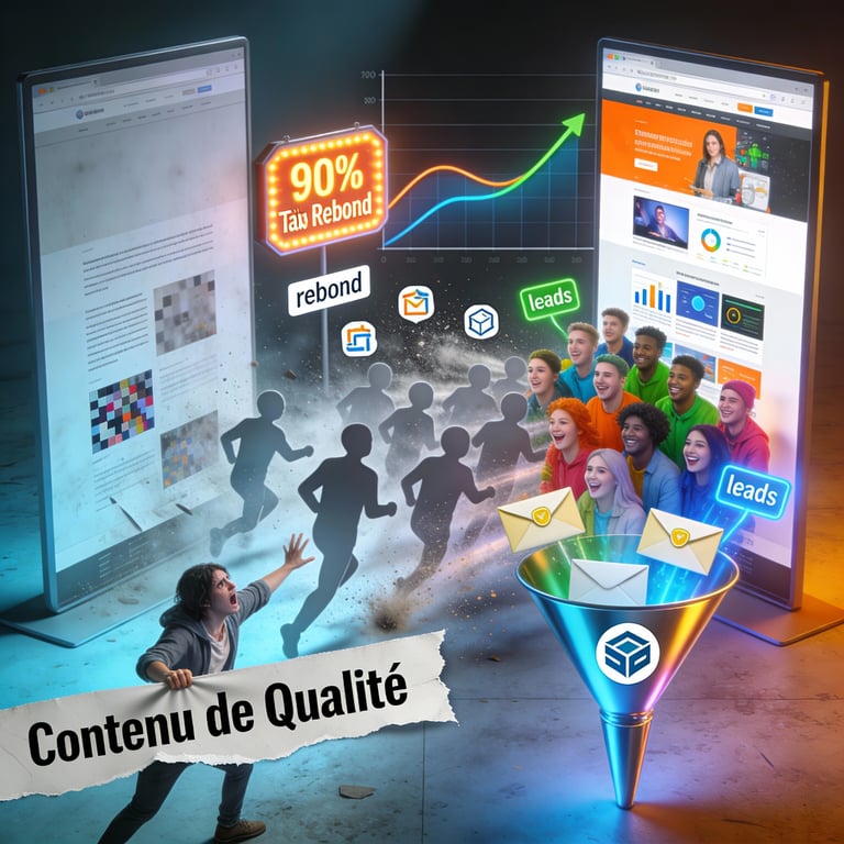Pages vides ou mal écrites : audience s'ennuie, rebond 90%. Vous : efforts inutiles. Résultat : leads ignorés, concurrents captent attention.